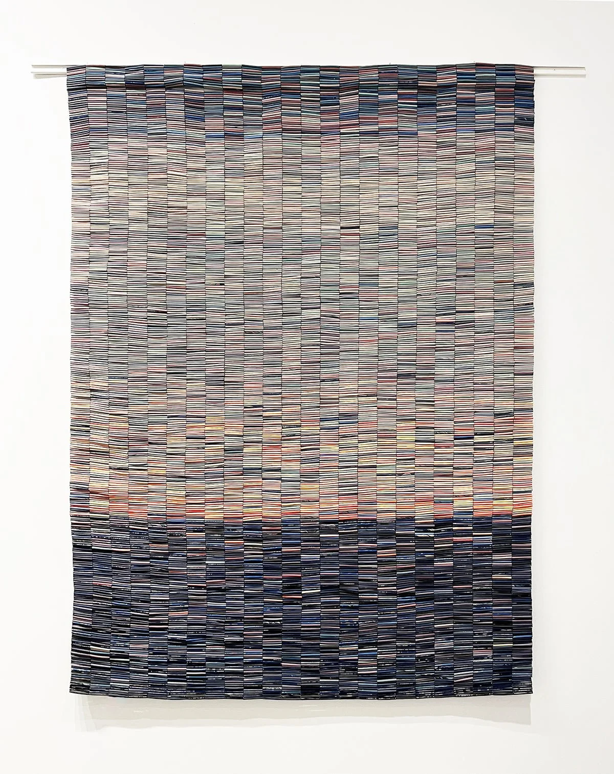 Friends, colleagues and strangers worked with me to replace the black text of the law with red beads, and the white page with white beads.